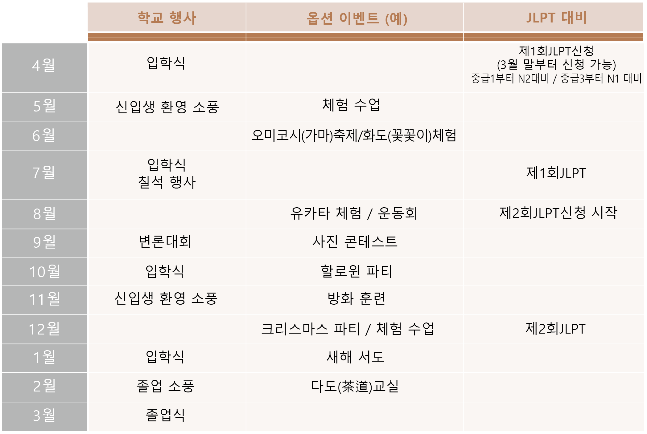 > 연간 스케줄