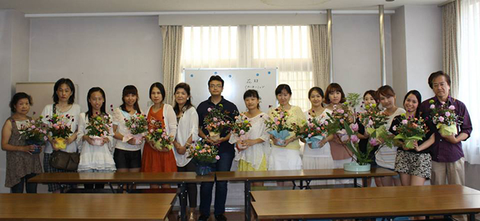 11 akamonkai students attended a Japanese flower arrangement class. With the support of instructors, everyone created beautiful flower arrangements.