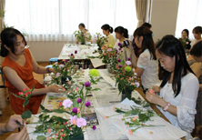 11名の赤門会の学生が華道教室に参加しました。 先生の指導の下、思いのこもった素敵な生花が出来ました。